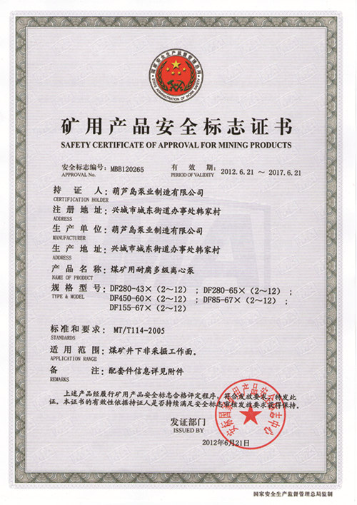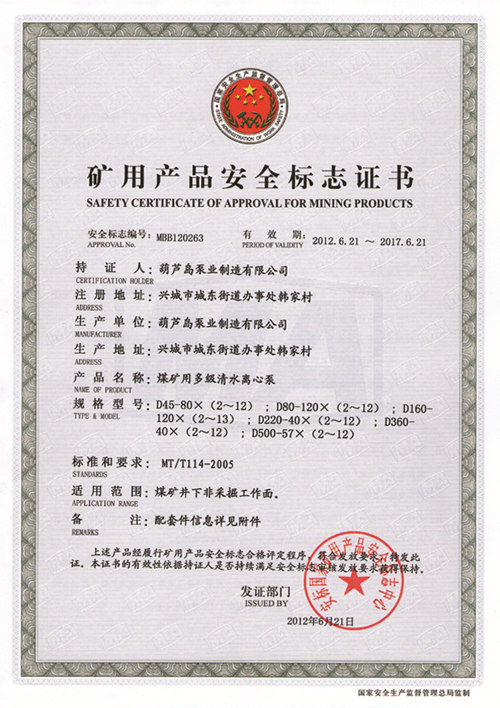 礦用產(chǎn)品安全標(biāo)志證書(shū)